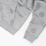 • Long sleeve cotton eco-responsible hoodie in grey. Low Shrinkage Fleece Drawstring at hood. Heat Pressed Rhinestone Transfers. Kangaroo pocket at waist. Rib knit cuffs and hem.